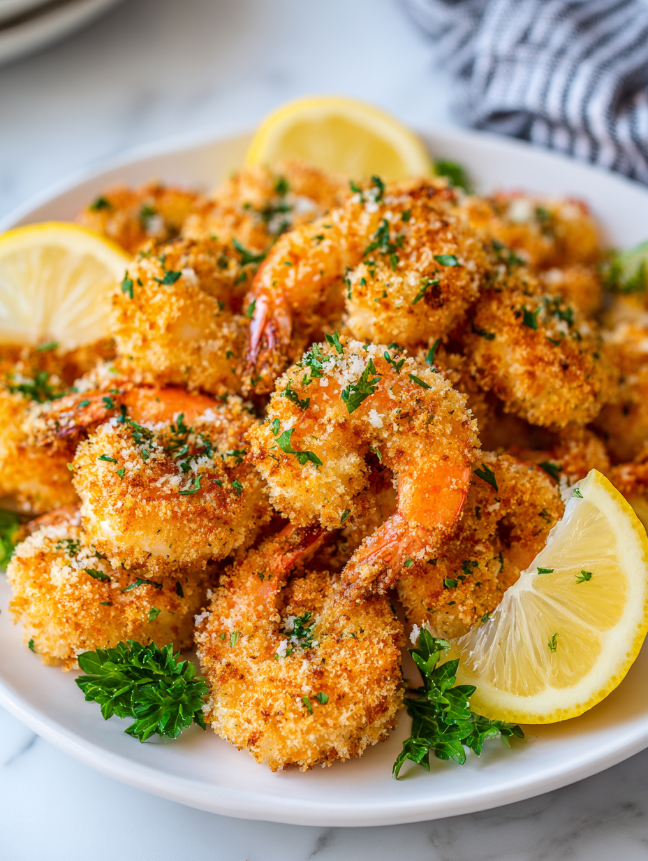 Let the shrimp rest for a couple of minutes to set the crust. Serve hot with lemon wedges or your preferred dipping sauce. For best texture, enjoy immediately while crispy.