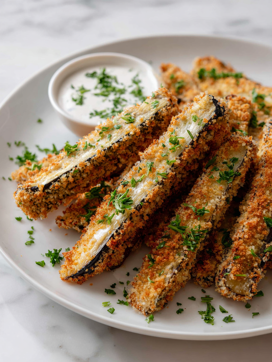 • They become golden and crispy, providing the perfect coating that contrasts with the tender eggplant inside. Feel the crunch under your teeth for that satisfying bite.