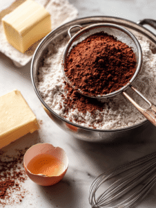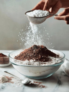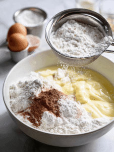 Step 2: In a bowl, sift together the flour, cocoa powder, baking soda, and salt. Set aside.