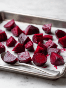 - Peel and roughly chop the beets, then spread them on a baking sheet. Roast in a preheated oven at 200°C (400°F) for about 45 minutes until they are soft and emit a sweet, earthy aroma.
