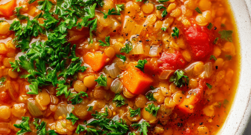 - Check the texture: The lentils should be soft and breaking apart, and the vegetables fully tender. The broth should be velvety, not watery.