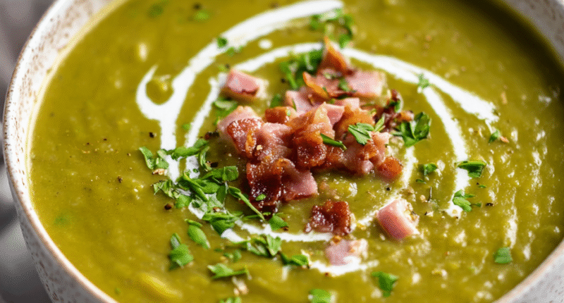 This comforting split pea soup uses a slow cooker to transform simple ingredients into a velvety, smoky broth. Made primarily with split peas, aromatics, and smoked ham hock, it develops a rich, hearty texture that feels like a warm hug in a bowl. The final dish is thick, fragrant, and perfect for chilly evenings, with a smooth, velvety appearance.