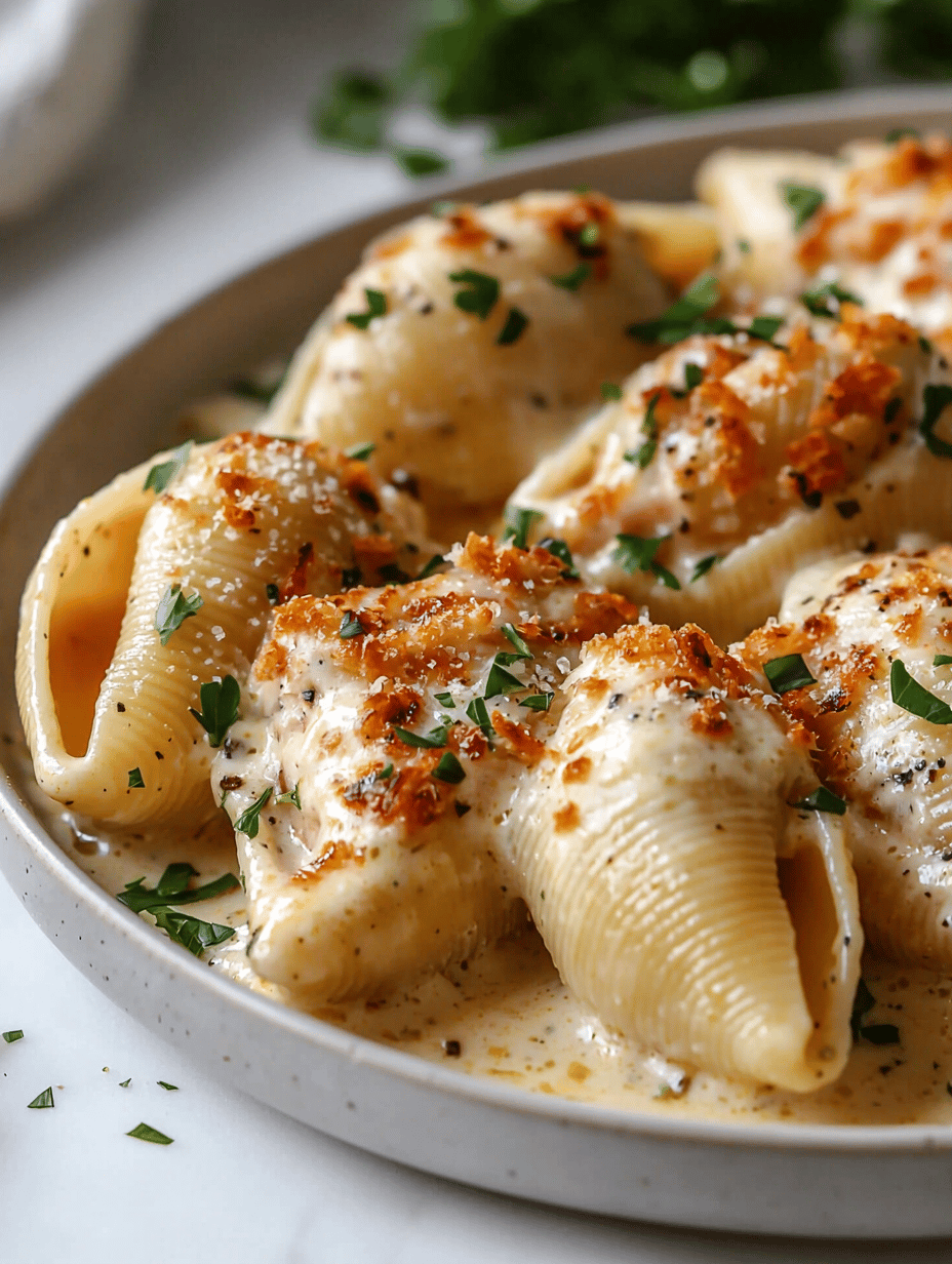 Creating this Garlic Butter Chicken Alfredo Stuffed Shells isn’t just about satisfying a craving. It’s about cherishing those moments when comfort food becomes an act of tenderness and care. The richness of the sauce, balanced with the savory chicken and fragrant garlic, makes each bite worth lingering over.