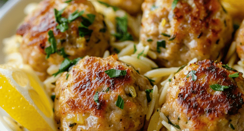 - Serve the lemon orzo topped with the flavorful chicken meatballs. Garnish with extra herbs or lemon wedges if desired for a fresh finish.