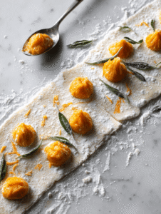 There’s a quiet magic in roasting pumpkin for pasta. It caramelizes the sugars and deepens the flavor, transforming a humble vegetable into something almost smoky and luxurious. I love how this method makes the filling rich enough to stand on its own, yet balanced by the freshness of the pasta.