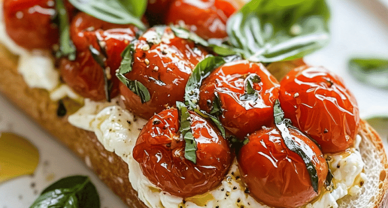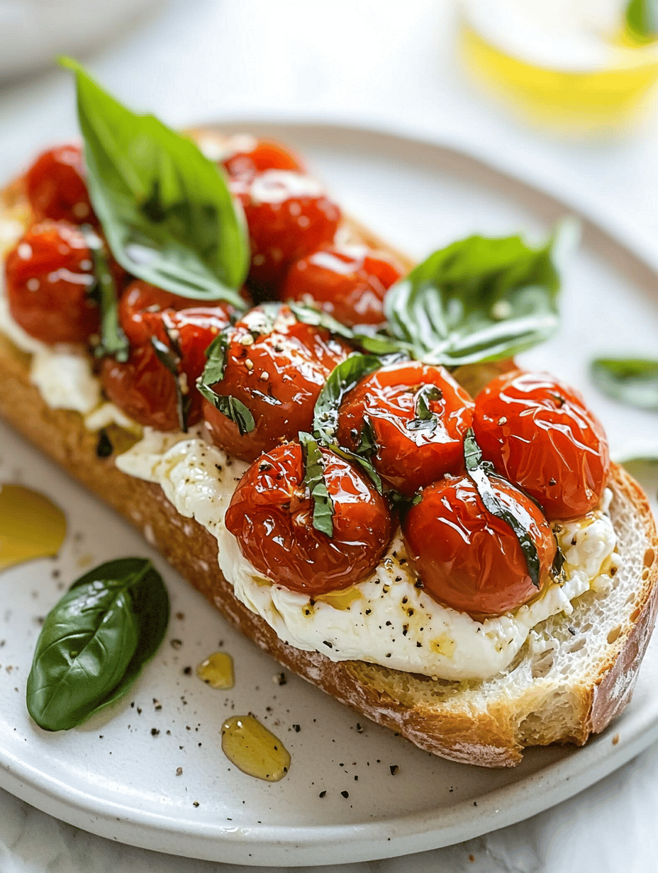 - Enjoy immediately while the bread is crispy, and savor the combination of sweet tomatoes, creamy burrata, and fresh basil on each delicious bite.