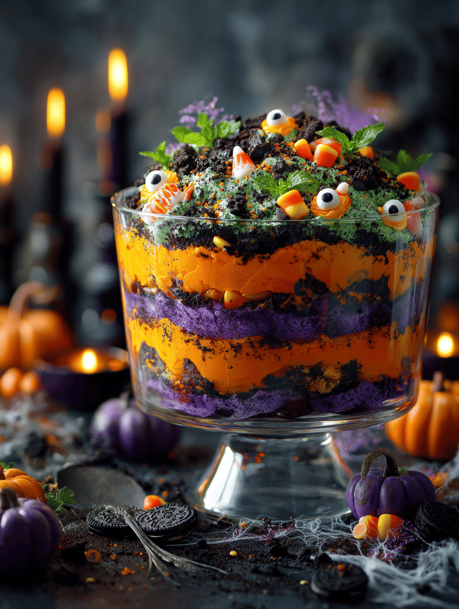 - Serve the trifle chilled, scooping up layers of pudding, cookies, and whipped cream for a festive, messy treat that’s perfect for Halloween!