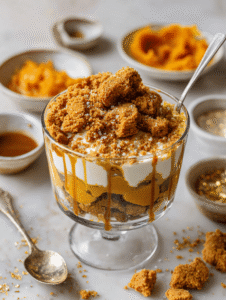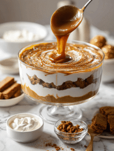 - Repeat the process: add another layer of pumpkin pudding followed by more ginger cookies, building up the layers until nearly full.
