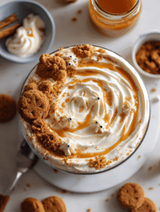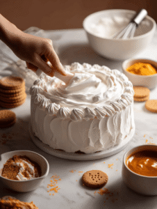 - Finish with a fluffy layer of whipped heavy cream, spreading it gently over the top to create a soft, cloud-like crown.