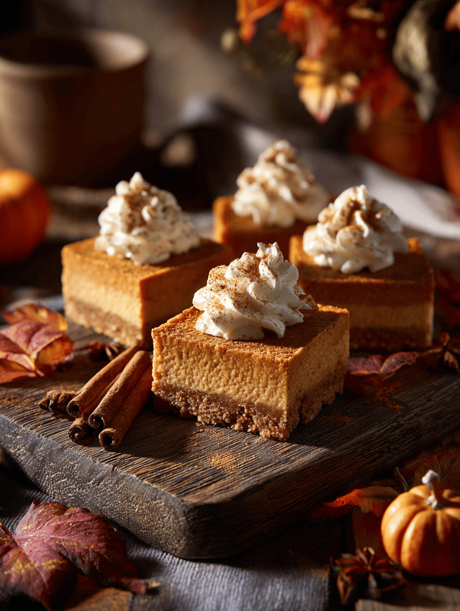 Pumpkin cheesecake bars are a little project that turns the humble pumpkin into something rich and satisfying. They’re perfect for crisp fall days when the air smells of spice and the idea of a creamy, tangy dessert sounds just right. This recipe is about balancing the smooth pumpkin with the tangy cream cheese, all wrapped up in a buttery crust.
